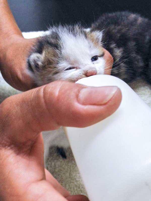 Einen Tag und viele Fläschchen später waren sie schon viel ruhiger und fingen sogar schon an zu schnurren. Ihr Kot zeigte deutlich die Spuren des Hungerns. Sie haben Grashalme, Samen und Erde zu sich genommen; für die kleinen Kerlchen muss die Verzweiflung wirklich groß gewesen sein.