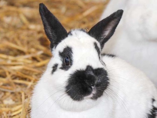 Kaninchenbock Paul kam mit weiteren Artgenossen durch eine Beschlagnahme zu uns. Der hübsch gezeichnete „Deutsche Riese“ ist Träger von E.C. und hat ein artgerechtes Zuhause bei neuen Kumpeln gefunden.
